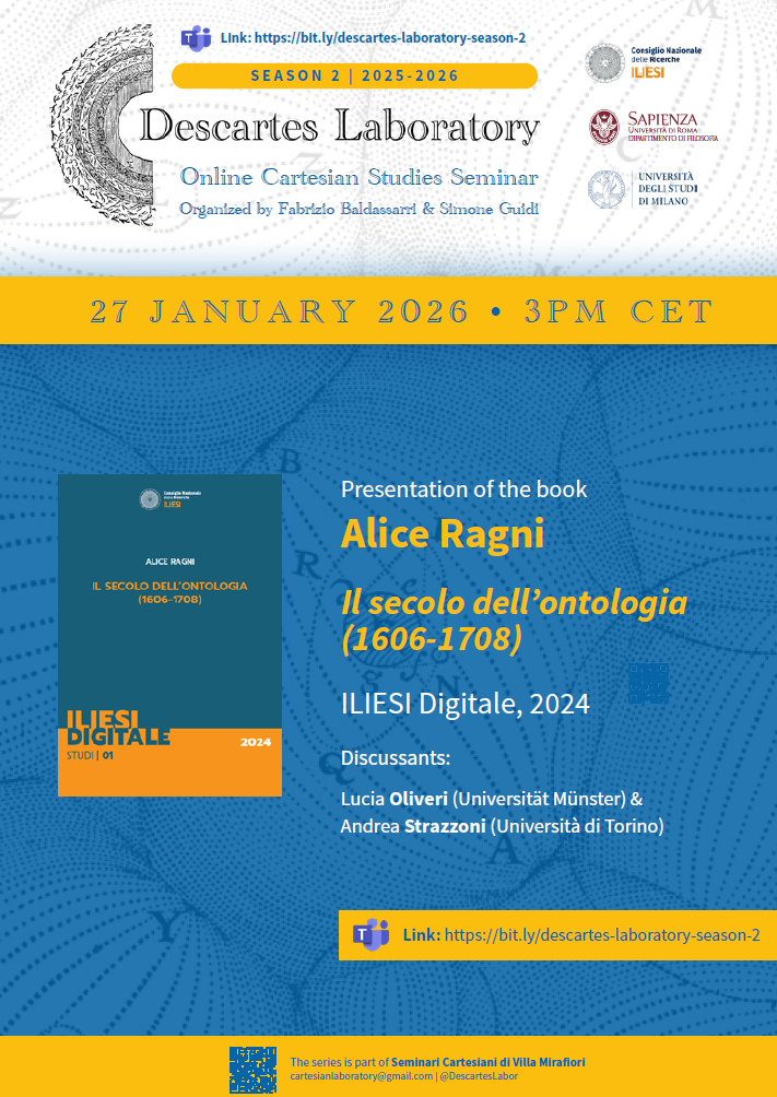 DescartesLab – 27 gennaio 2026, ore 15 (CET) Presentazione del libro di Alice Ragni, Il secolo dell'ontologia, 1606-1708