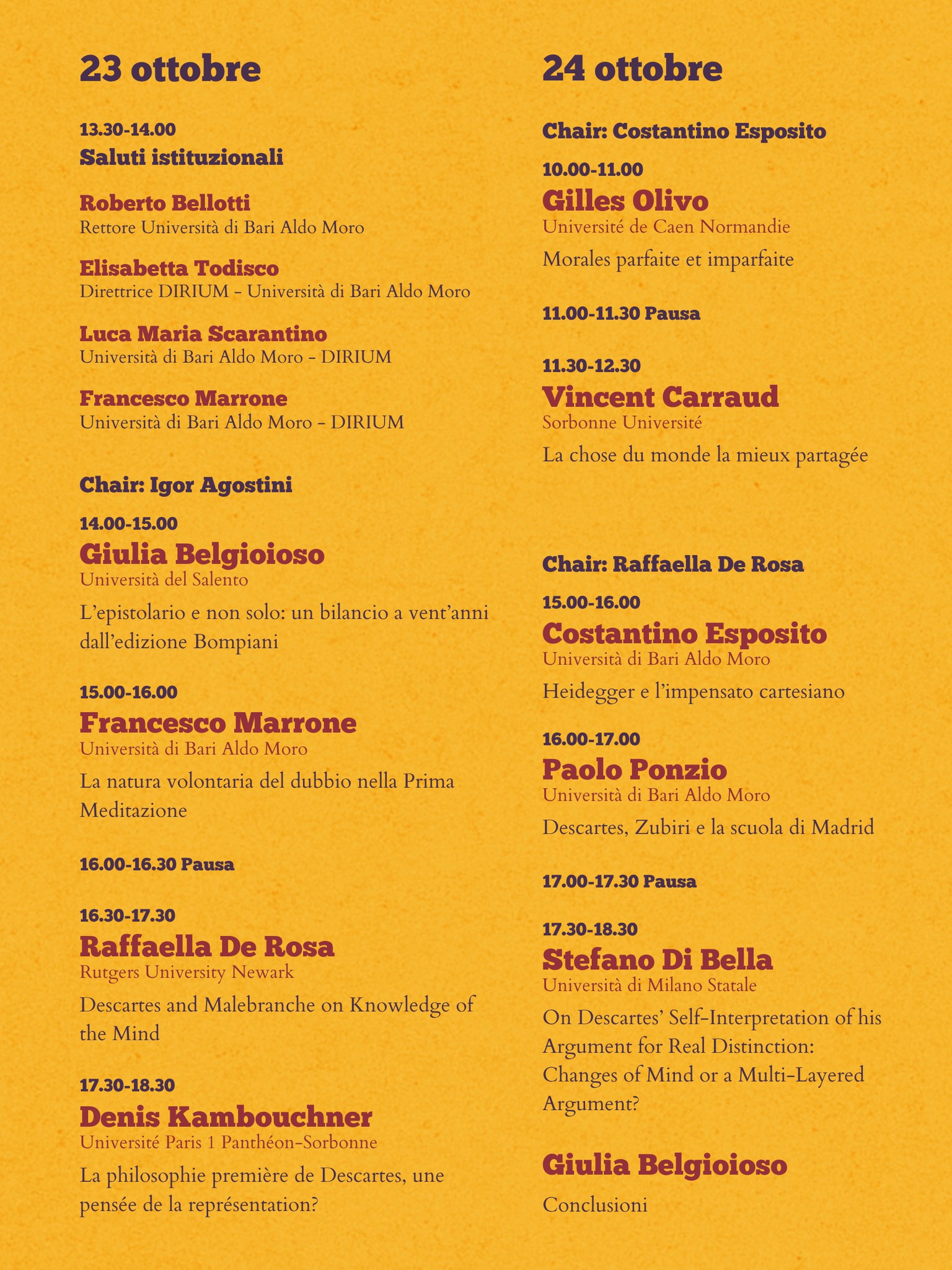 - Convegno Internazionale “Studi cartesiani. Prospettive e ricerche”. Bari 23 e 24 ottobre 2025